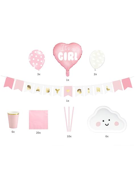 Uključuje: 1 girland, 6 papirnih šalica, 6 papirnih tanjura, 10 papirnih slamki, 20 maramica, 1 folijski balon i 5 lateksnih balona