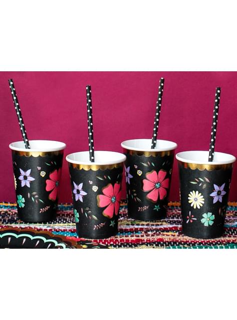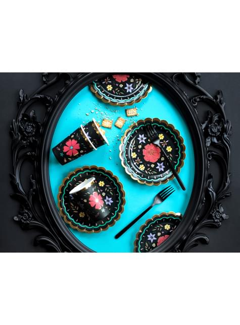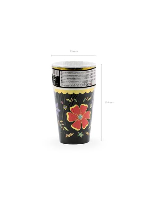 6 crna papirnate čaše sa šarenim cvijeća - Dia de los Muertos Kolekcija