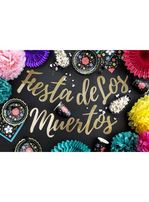6 Ploče crnog papira raznobojnim cvijet (18 cm) - Dia de Los Muertos Collection