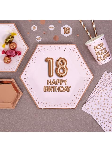 8 "18 Sretan rođendan" heksagonalni papir ploča (27 cm) - i Glitz Glamour Pink i Rose Gold