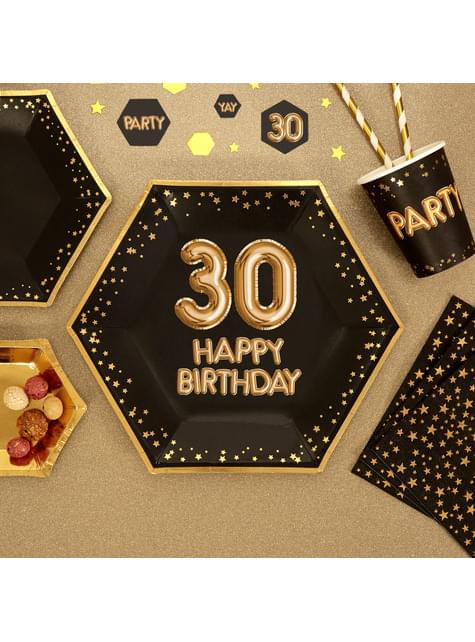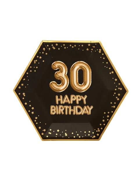 8 "30 Sretan rođendan" heksagonalni papir ploča (27 cm) - i Glitz Glamour Black & Gold