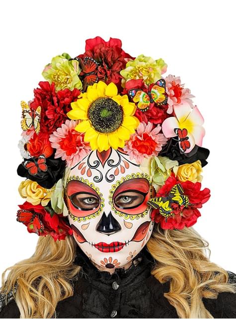 Maska Catrina za Dan mrtvih s cvijećem